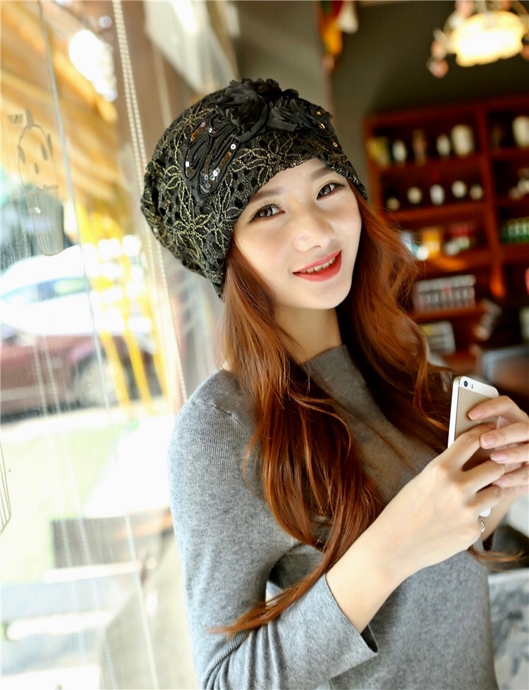 フラワーデザインが可愛くて薄手でとっても軽くかぶれるレディースニット帽です♪