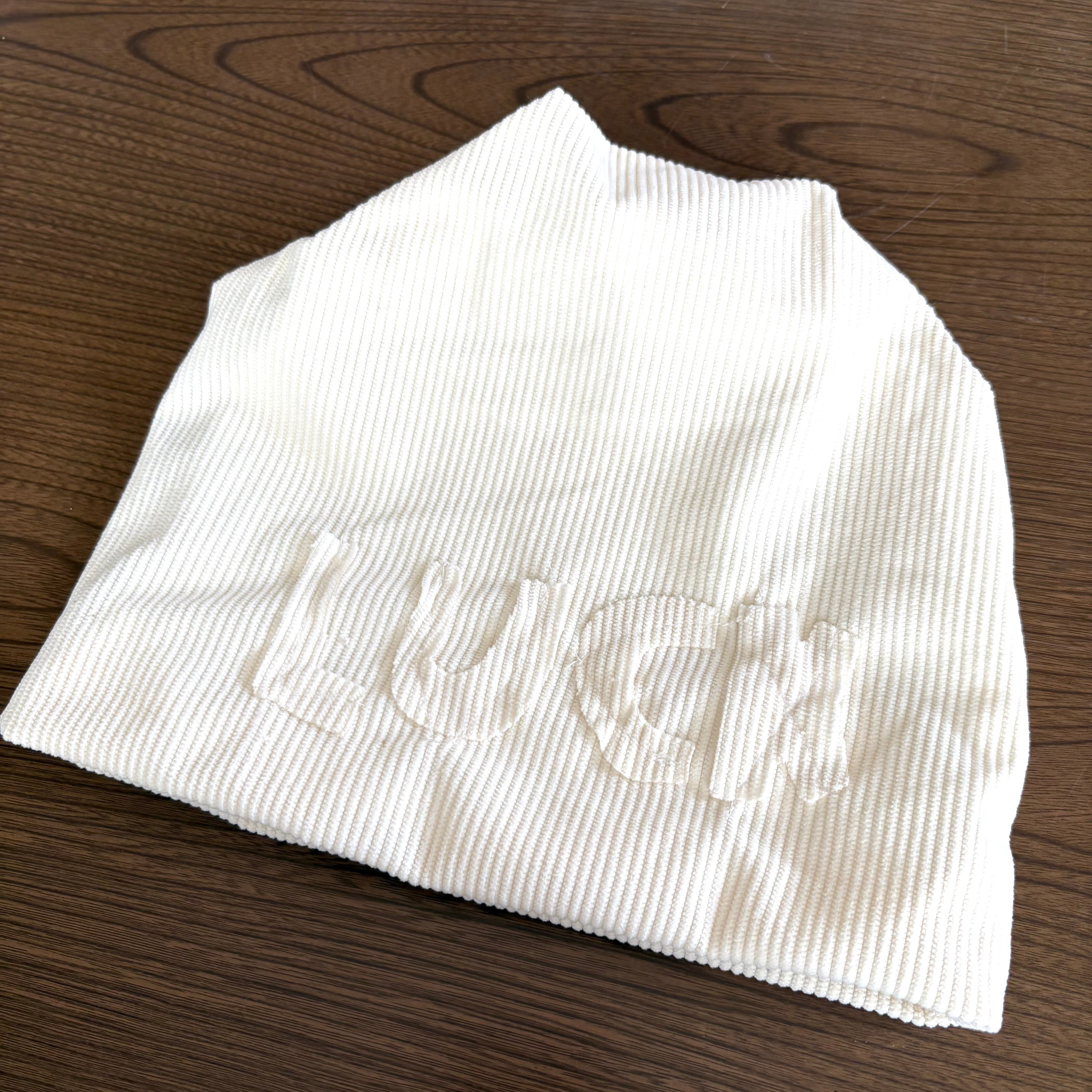 このニット帽は、シンプルなデザインにLUCKの文字がさりげなくワンポイントになっており、寒い秋冬の季節でもしっかりと頭を温めてくれます!