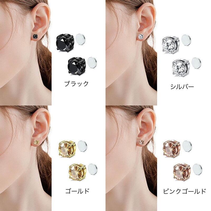 マグネットピアス ピアス イヤリング マグピ キラキラ アクリル 簡単装着 磁石 ノンホール 8㎜ 両耳用 ブラック ゴールド シルバー