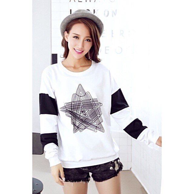 トレーナー 薄手トレーナー レディース 長袖 胸に星マーク ホワイト